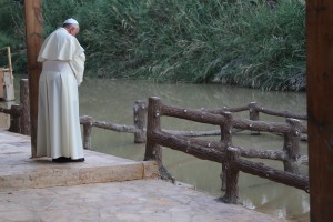Pope Francis at Bethany-beyond-the-Jordan -standing by River-courtesy of PopeVisit.Jo